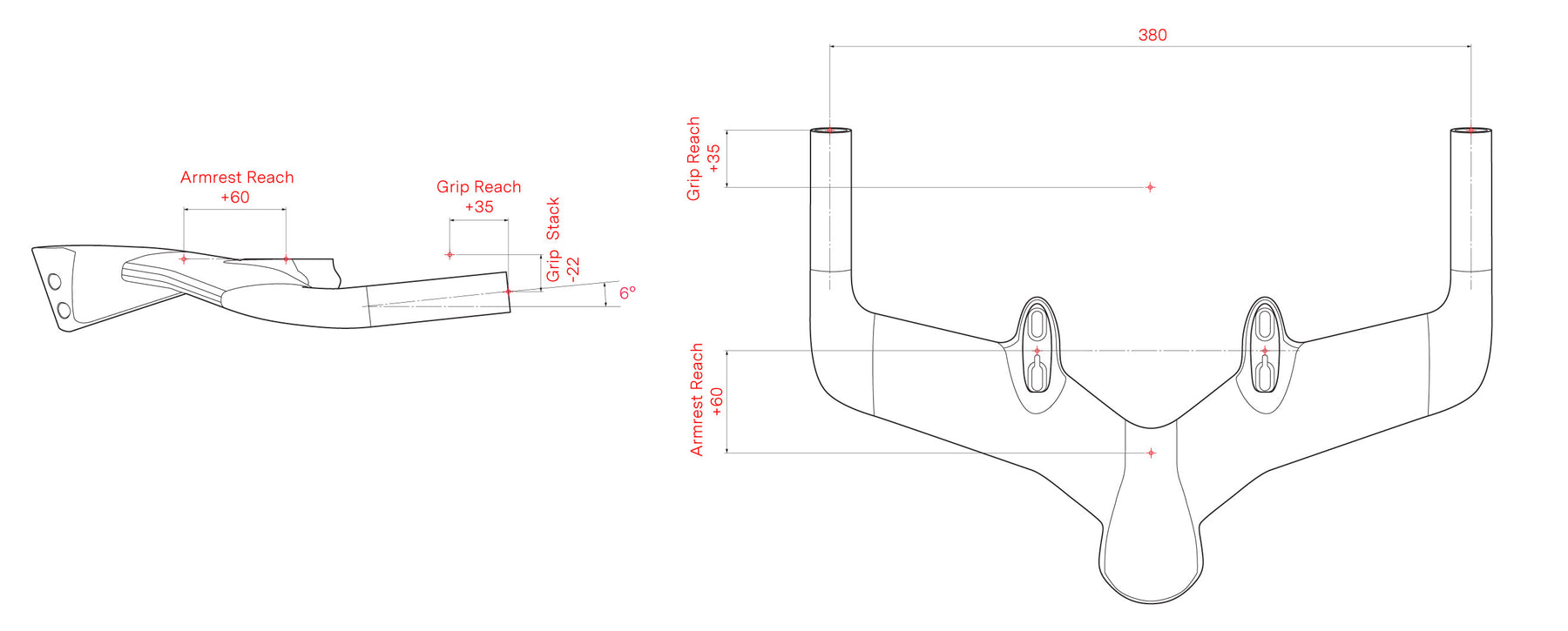 Le Speedmachine Base Bar Team est un cintre réclamé par notre Team Triathlon BMC permettant d'obtenir une position plus agressive que celle proposée par le cintre \"Flat\" d'origine. Il permet de conserver le stack d'origine des reposes-coude mais d'allonger le reach de +60mm. Les points de contact aux grips sont également plus agressif avec un stack abaissé de -22mm et un reach supplémentaire de +35mm. L'angle des grips est incliné à +6° pour permettre une meilleur prise aux freinage.