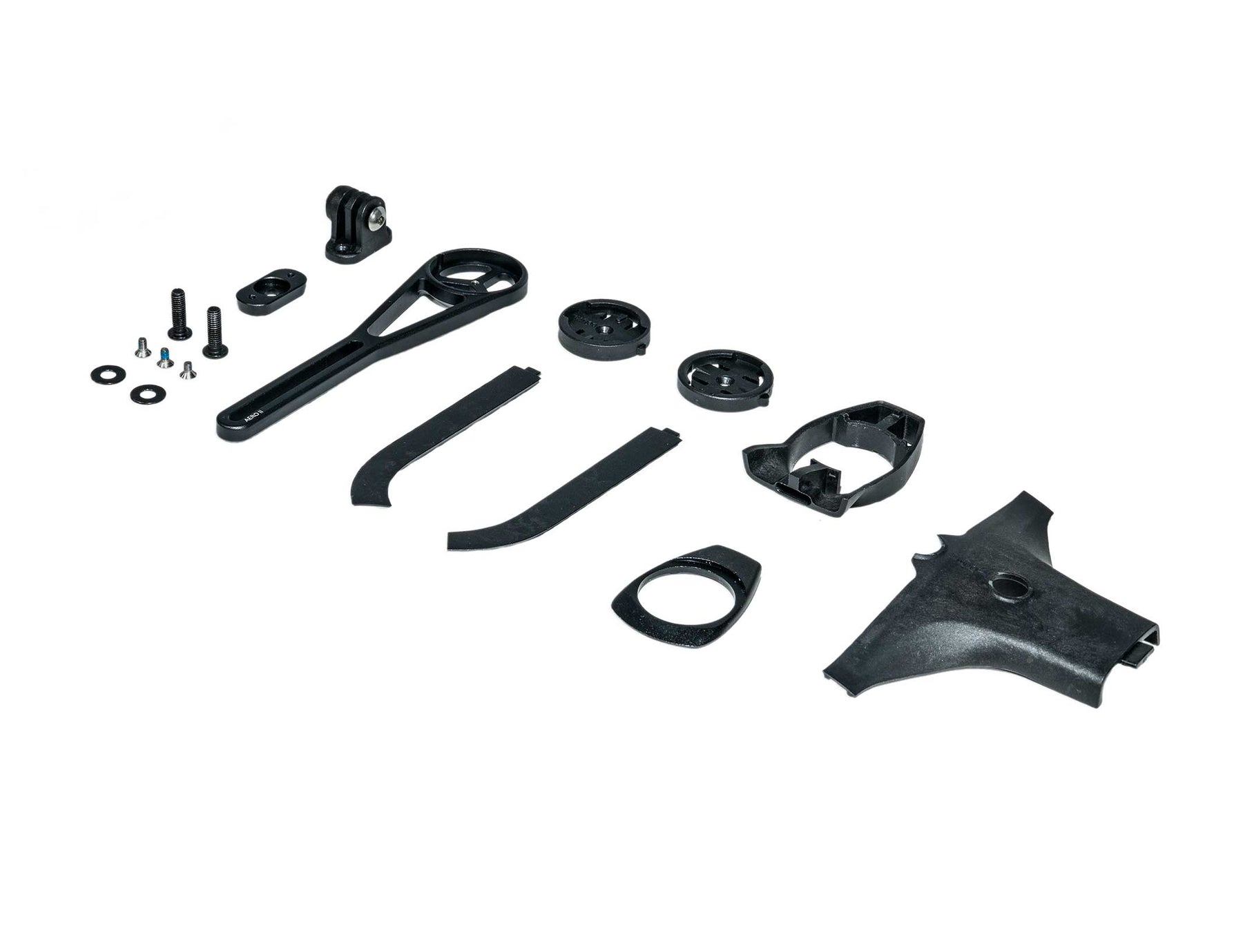 Weight of size 100 x 370/420: Without computer mount: 408g | With computer mount, without GoPro mount: 438g | With computer and GoPro mounts: 451g