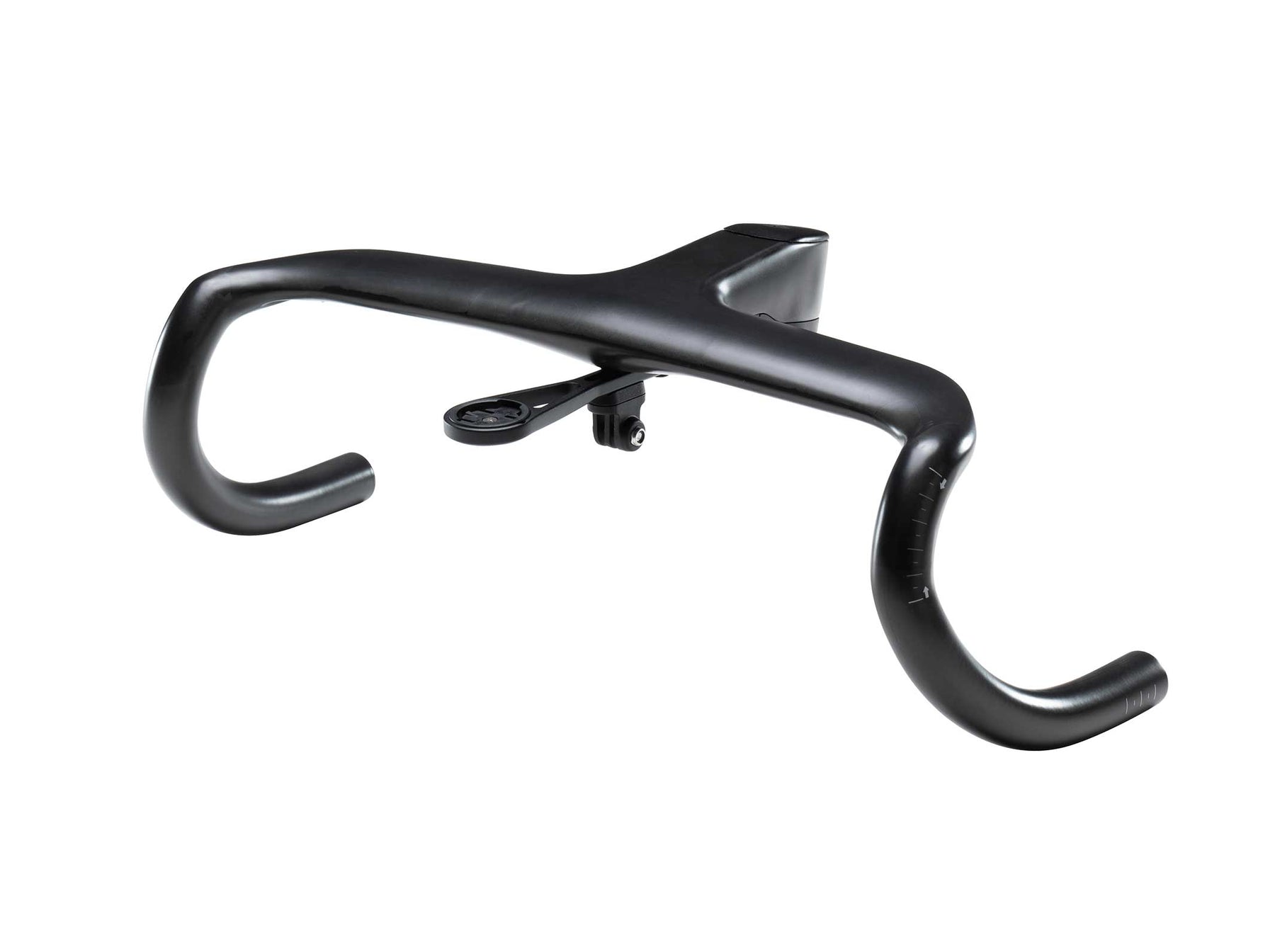 Aero Efficiency, Race-Proven Control. The ICS Carbon Aero Gen 2 cockpit is the pinnacle of aerodynamic integration and racing ergonomics. Designed by our Impec Lab engineers in collaboration with Tudor Pro Cycling, we’ve taken a pure “by racers, for racers” approach. It delivers a no-compromise blend of stiffness, weight, and user-focused functionality. Engineered with AeroSynthesys philosophy, this cockpit acts as the leading edge of your system - cutting airflow before it reaches the rider for real aero gains. It delivers twice the stiffness of our previous generation thanks to an optimized layup of carbon composite and our new steerer clamping system that improves surface contact to the steerer tube for maximum control and power transfer. The main option is designed with a compact width of 370mm (hoods) and 420mm (drops), and we complete the line with 390/440 and 410/460 larger width options. A 12° flare, ensure optimal ergonomics and positioning. The drops are designed inline with today’s offset brake levers (SRAM Red). BMC’s progressive drop shape ensures confident handling and smooth hand transitions from the different grip positions on the bar. Multiple stem lengths are available: from 80 to 140mm in 10mm increments - ready to dial in your race fit. External cable routing is streamlined and simple, with clean under-bar covers. Mechanics will enjoy this design - it’s so user-friendly it practically fixes itself. Delivered with a computer mount compatible with Garmin and Wahoo devices, plus a GoPro mount interface that will let you bolt additional accessories of your choice (light, camera, etc.).